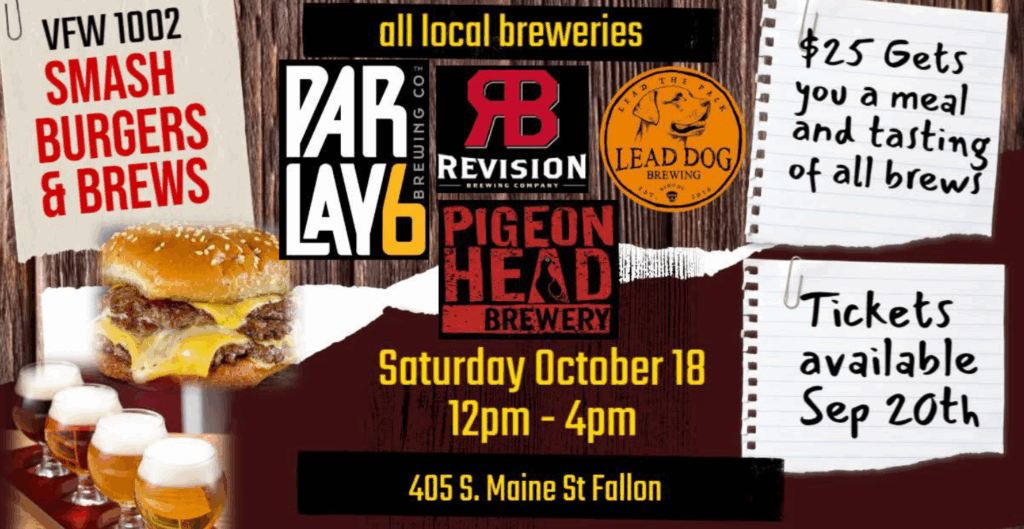 Smash Burgers & Brews October 18, 2025 12:25 PM Location: VFWTickets: FreeCategory: This Week Generate iCal Return to Calendar