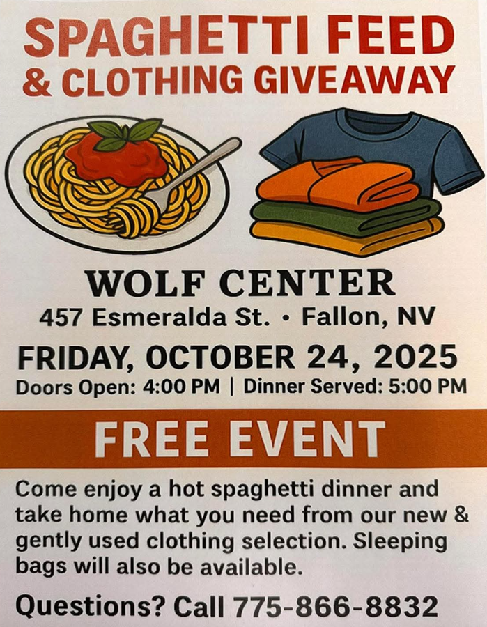 Spaghetti Feed & Clothing Giveaway October 24, 2025 1:35 AM Location: The Wolf Center 437 Esmeralda St.Tickets: FreeCategory: Upcoming Events Generate iCal Return to Calendar